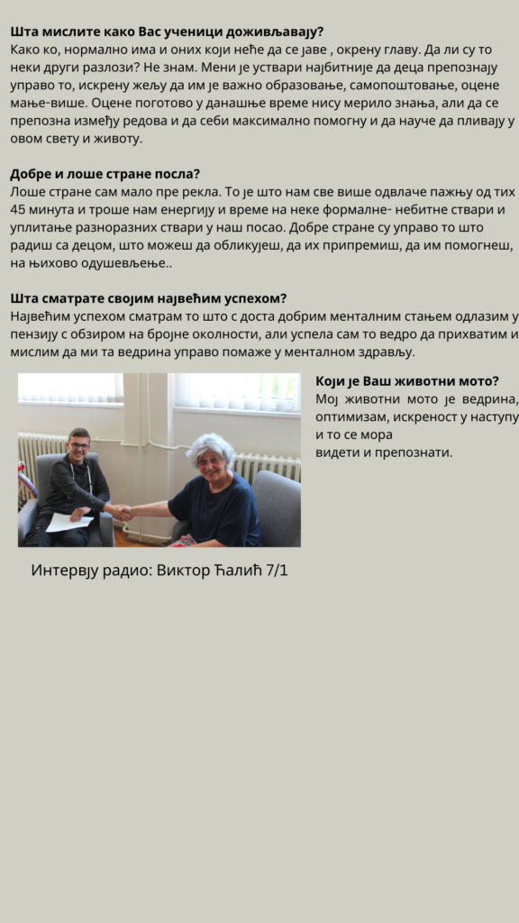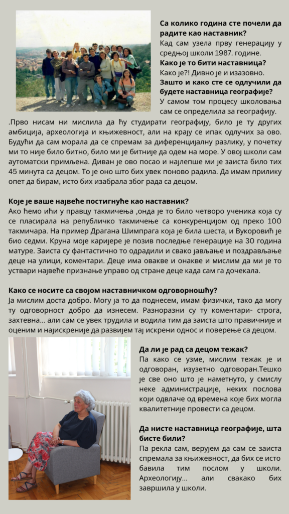 7 jun Upoznajte nastavnicu – Mirjana Popović, nastavnica geografije galerija, učenički radovi Leave a comment