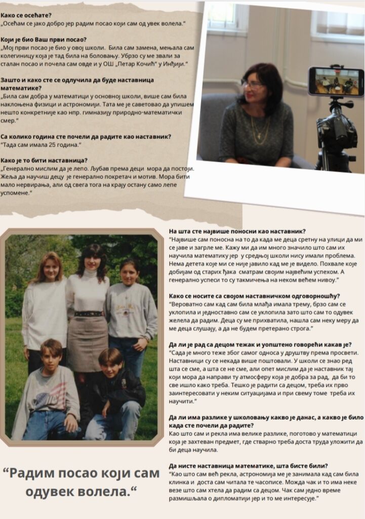 Чланови Ученичког парламента су покренули иницијативу да се наставници наше школе представе на занимљив начин. Први разговор је са наставницом математике.